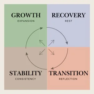 When you understand the season you’re in, you create the foundation for a more aligned, grounded, and fulfilling phase of your life. You make clearer choices, reduce shame and comparison, and build a more sustainable relationship with ambition -one that supports you rather than breaks you.